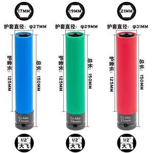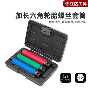 伟立达15cm超长轮胎螺丝风炮套筒3件套拆卸专用