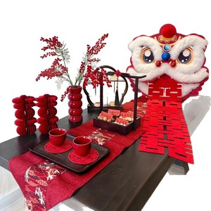 婚房布置结婚茶几套装客厅舞狮摆件装饰敬茶桌男方女方订婚宴全套