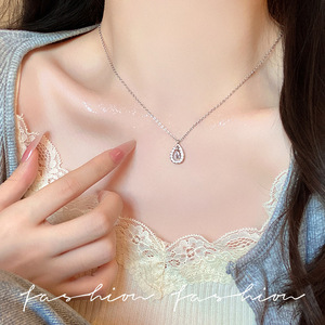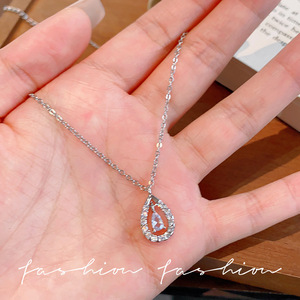 灵动水滴项链2025年新款女高级设计感轻奢通勤锆石网红钛钢锁骨链