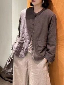 秋季新品文艺复古短款亚麻衬衫开衫休闲上衣