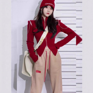 2025秋冬装新款女装红色小香风茶里茶气搭配一整套通勤两件套装裤