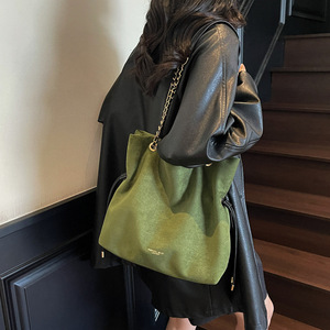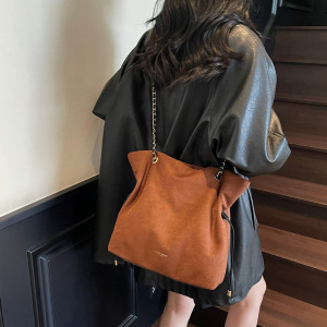 高级感小众设计磨砂麂皮绒手提水桶包女2025新款单肩包通勤斜挎包