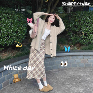 辣妹复古格纹半身裙女2024春夏美拉德穿搭高腰显瘦百搭A字中长裙