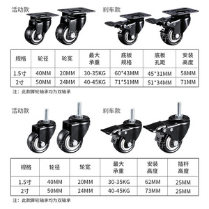 1.5/2寸金钻万向轮丝杆轮子双轴承推车万向轮带刹车滑轮源头