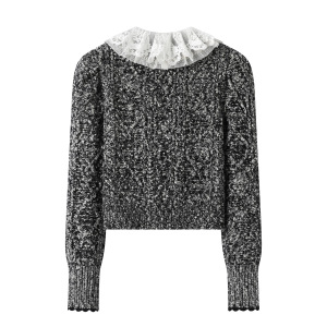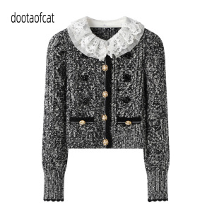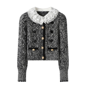 2025秋季新款拉夫领花式纱短款修身针织开衫外套上衣LF25Q41ZC055