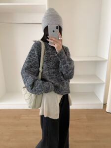 2025秋冬新款重工花式纱针织短款慵懒风宽松圆领毛衣显瘦百搭上衣