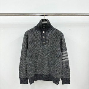 23FW 秋冬时尚百搭简约经典四杠翻领针织套头长袖上衣