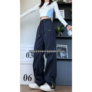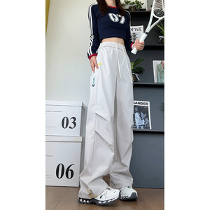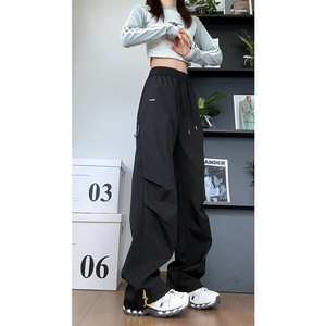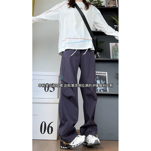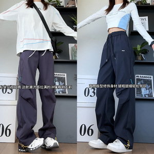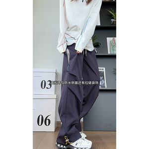 窄版显瘦刺绣直筒裤秋季男款撞色抽绳宽松透气百搭三防冲锋裤