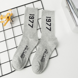 春秋纯棉字母防臭吸汗男士潮流袜诸暨全棉百搭时尚中筒袜子男批发