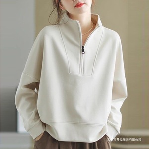 立领半拉链卫衣女士秋冬款洋气外穿长袖套头休闲上衣宽松大码女装