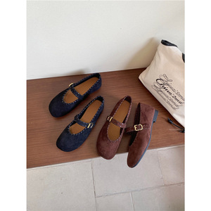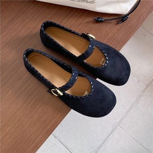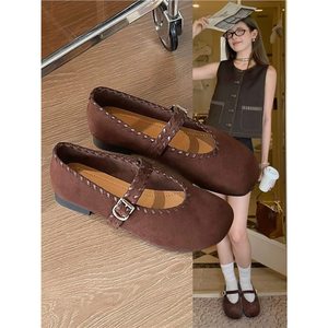 真皮一字扣带玛丽珍女鞋2025夏季新款复古百搭芭蕾鞋平底单鞋