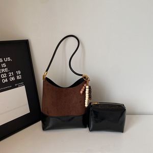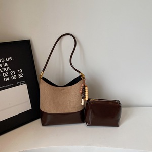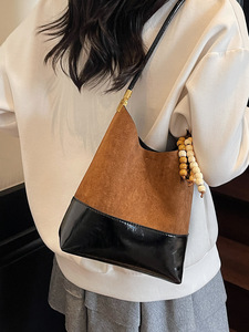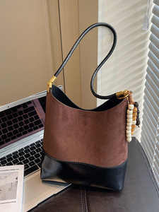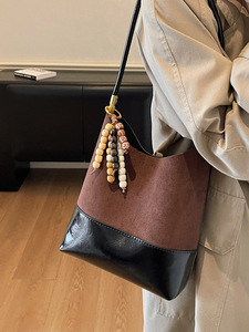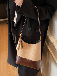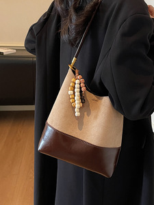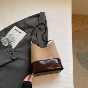 复古磨砂大容量包包女2025新款时尚简约通勤单肩包撞色子母水桶包