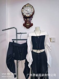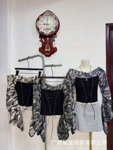 美式辣妹纯欲风长袖女秋季2025新款迷彩束腰绑带设计显瘦上衣