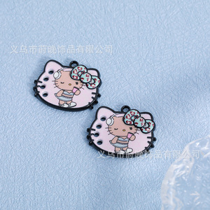 锌合金烤漆卡通KT猫头吊坠diy手机链钥匙扣项链饰品配件挂饰材料