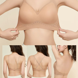 粉底液隐形闪亮肩带大露背美背聚拢内衣女固定杯无钢圈无痕文胸