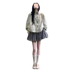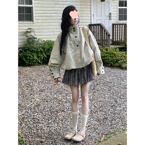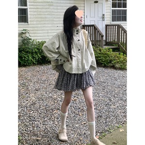 早秋季韩系慵懒chic别致灰色工装短款正肩外套女春秋2025新款爆款