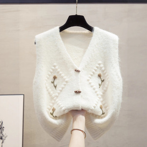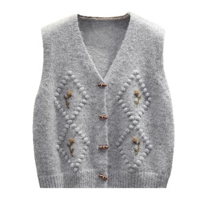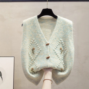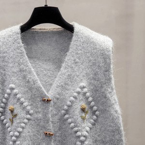 手工花开衫v领针织马甲背心女2025秋冬新款宽松外穿马夹毛衣坎肩