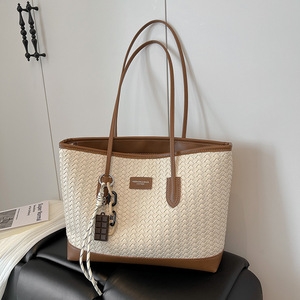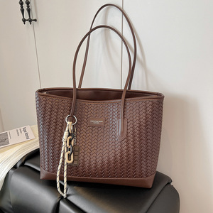 外贸高级感复古大容量包包女式2025秋冬季新款编织纹单肩包托特包