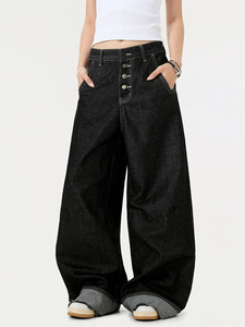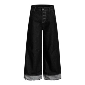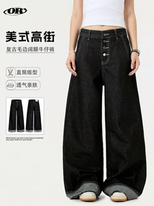OREETA丨美式复古撞色毛边设计感直筒牛仔裤男女款宽松阔腿长裤