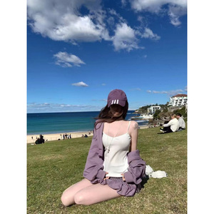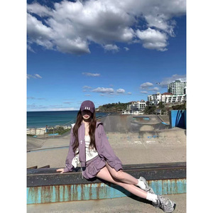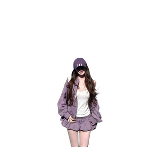套装女2025秋季韩系辣妹风短款夹克紫色外套上衣高腰半身裙两件套