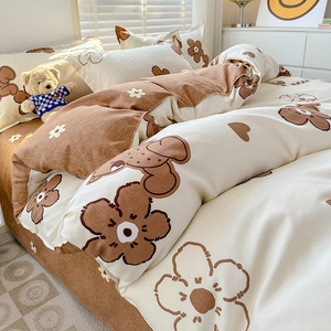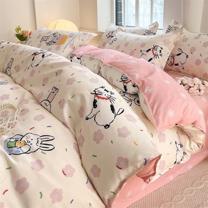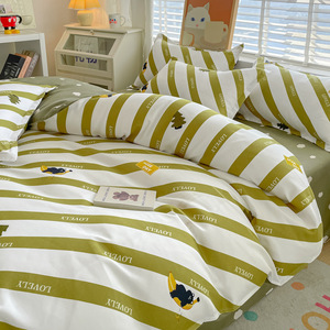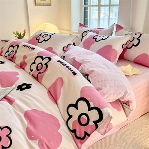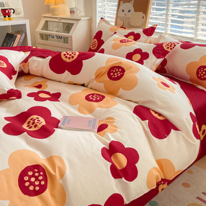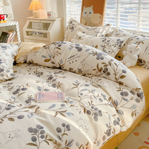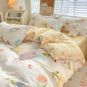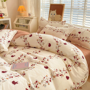小清新四件套床上用品家用水洗印花床单被套学生宿舍三件套
