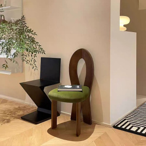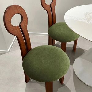 法式实木餐椅中古人鱼钥匙椅子靠背复古侘寂风设计师餐厅化妆凳子