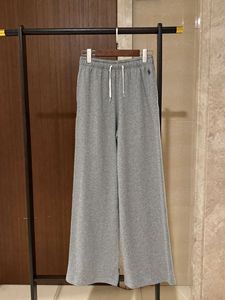 南油25秋新款拉夫小马刺绣抽绳松紧腰直筒宽松百搭阔腿抓绒卫裤女