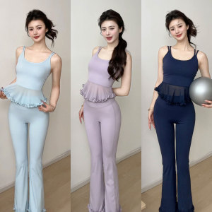 运动内衣女夏季固定杯美背防震花边瑜伽服背心普拉提训练健身文胸
