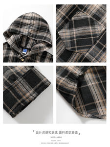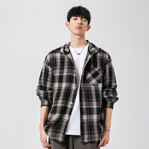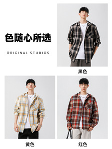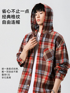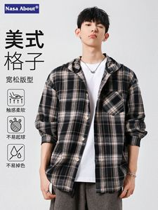 NASA美式格子连帽长袖衬衫男士春秋2025新款宽松休闲男生衬衣外套