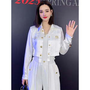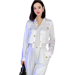 深圳南油质感短款开衫长袖外衣两件套女装白色休闲宽松阔腿裤穿搭