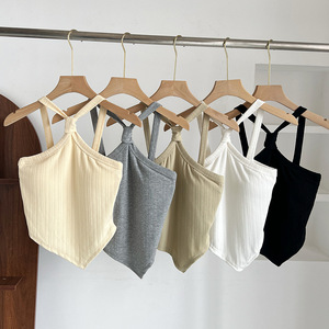 甜辣不规则设计感挂脖美背吊带背心女带胸垫内搭外穿无袖抹胸上衣