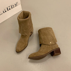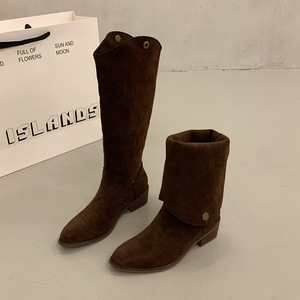 复古两穿西部牛仔长筒靴骑士靴女2025秋冬季新款百搭不过膝瘦瘦靴