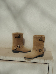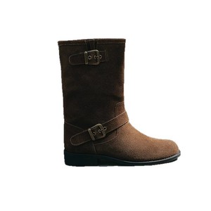 羊皮版~复古磨砂绒面皮带扣圆头粗跟西部牛仔靴中筒靴女马丁靴子