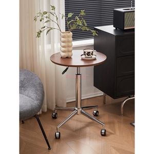 中古风茶几小桌子简约现代小圆桌沙发边桌推车可升降边几移动茶几