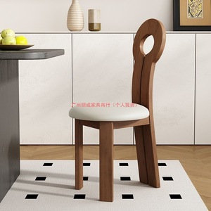 家用实木靠背餐椅中古风餐桌椅凳子高级感复古家用小户型钥匙椅子