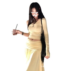套装长袖韩系新款一整套斜肩辣妹连衣裙上衣半身裙长裙两件套纯欲