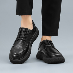 潮牌男士皮鞋英伦风潮流厚底休闲鞋低帮系带增高黑色乐福鞋透气鞋