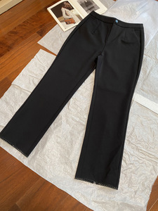 怒推!!原厂面料加单~T*H早秋时髦显瘦裤脚花边开叉显瘦休闲裤女