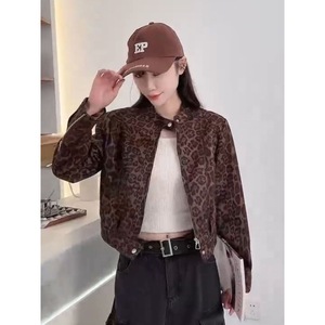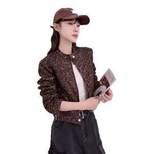 时尚豹纹立领拉链短款外套女2025春秋新款宽松显瘦休闲百搭夹克潮