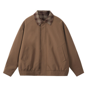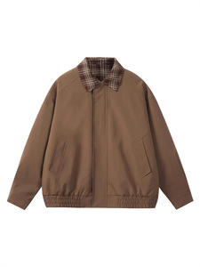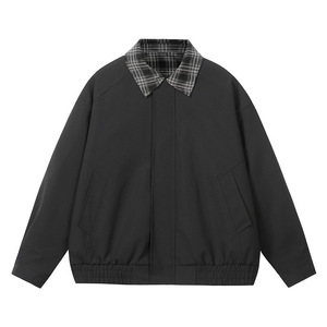 假两件拼色外套男春秋美式设计感情侣飞行夹克高街复古翻领上衣男