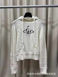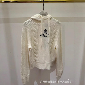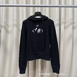 25SS薇薇秋冬新款土星刺绣毛衣荷叶领韩版修身显瘦连帽针织衫女装