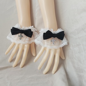 亚文化十字架蝴蝶结短款蕾丝手袖软妹手袖手腕装饰品日系手部配饰