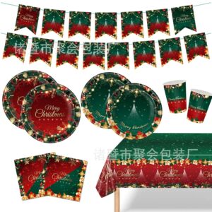 红绿圣诞节派对用品星星纸盘圣诞树布置装饰品一次性桌布餐具套装