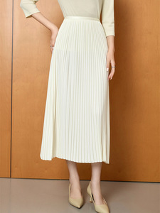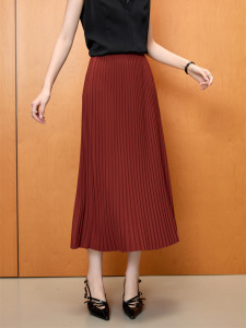 新款气质褶皱半身裙2025秋季chic纯色百褶裙女中长款裙子一件代发