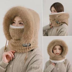 帽子女冬季围脖一体口罩护耳防风保暖骑车毛绒骑电动车加厚套头帽