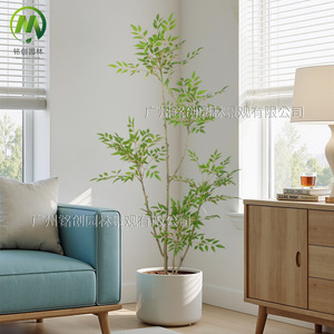 大型植物摆件盆栽仿真南天竹 高端落地款客厅装饰南天竹仿真绿植