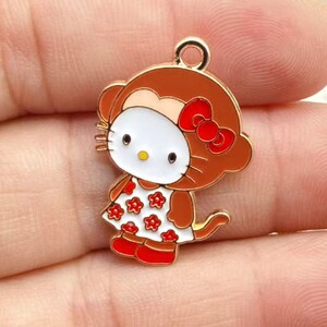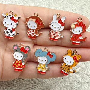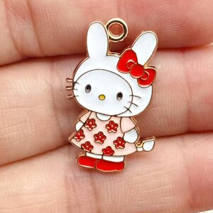卡通动物猫DIY合金配饰粉色凯蒂猫猫咪项链挂件钥匙扣吊坠装饰品