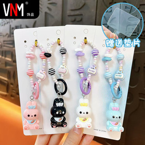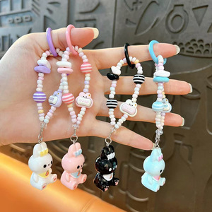 创意串珠小兔子手机链钥匙扣可爱包包挂件汽车钥匙链情侣礼品批发