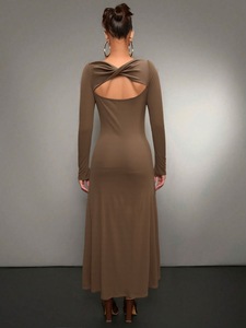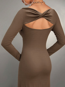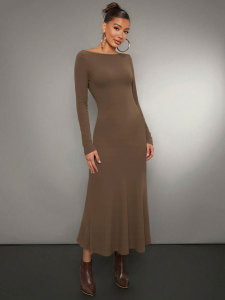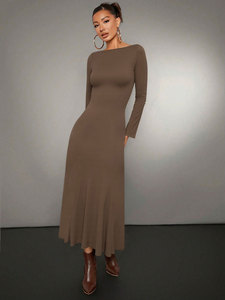 欧美跨境亚马逊纯色长袖连衣裙紧身鱼尾裙一字领修身中长款包臀裙