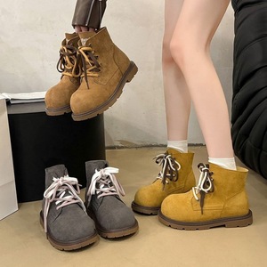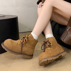 内增高大头马丁靴女2025秋季新款英伦风大黄靴短筒靴子百搭单靴女